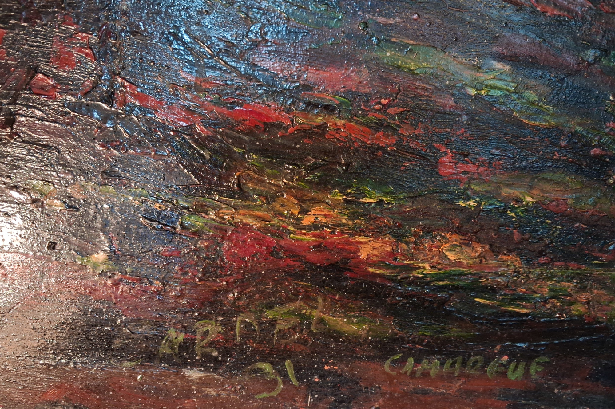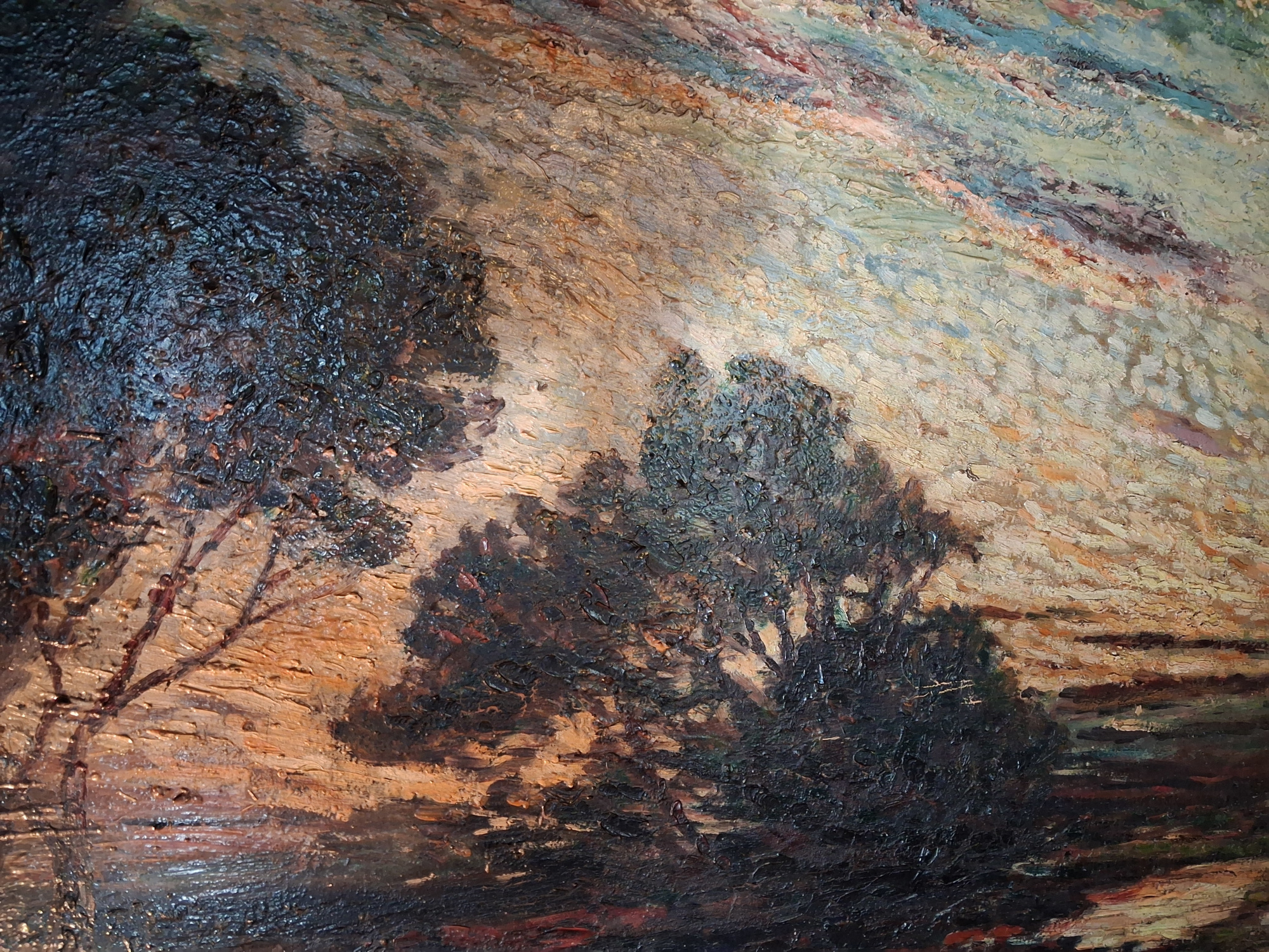 Early 20th century painting depicting a Camargue ( south of FRANCE ) lanscape at sunset , signed and dated " Cardel , 31, Camargue "